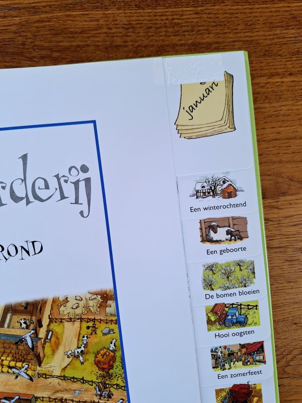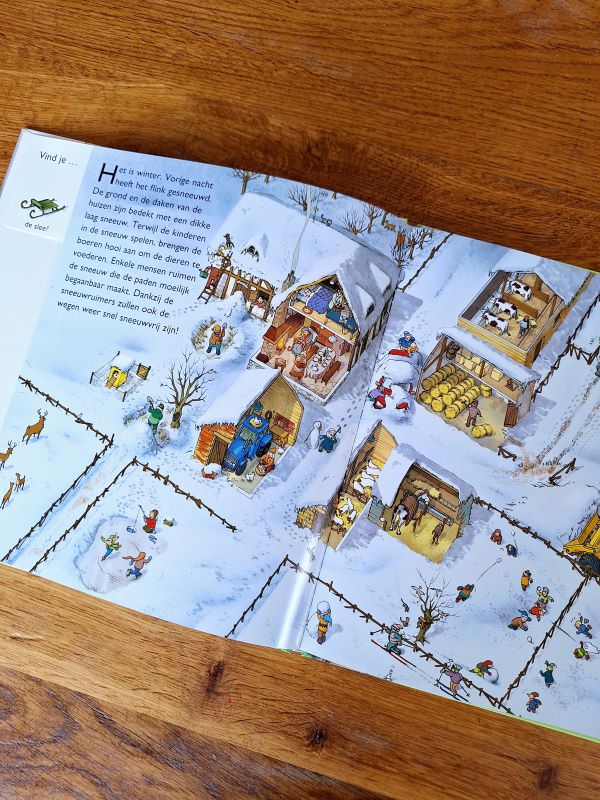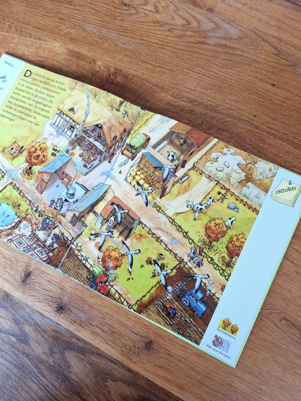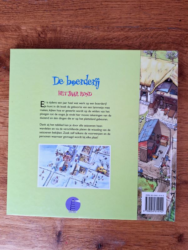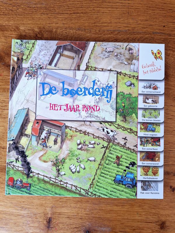 Tweedehands boek over het leven op de boerderij. Er is tijdens een jaar heel wat werk! Dit boek neemt je mee langs alle seizoenen en laat je naar verschillende dingen zoeken.