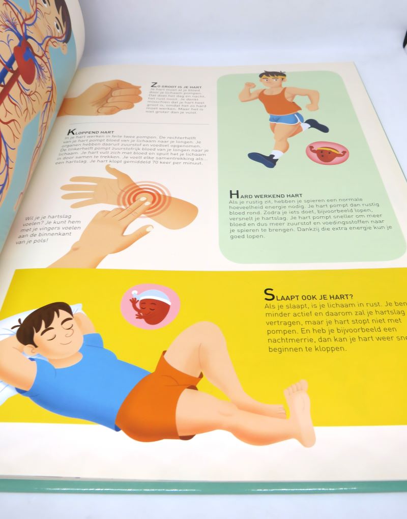 In dit tweedehands kinderboek staat alles wat je wilt weten over het menselijk lichaam. Hoe groot is je hart? Hoe geneest je huid? Hoeveel botten zitten er in je lichaam?