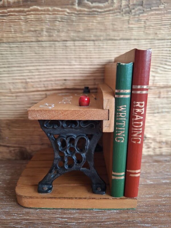 Vintage boekensteun uit de jaren ’70 ‘School daze’. Helaas is de set niet compleet, want origineel bestond hij uit twee boekensteunen. Maar los is hij ook nog steeds erg leuk!