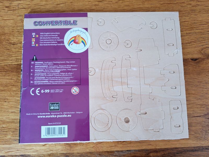 Maak je eigen auto met dit stoere houten bouwpakket, nog nieuw in de verpakking.