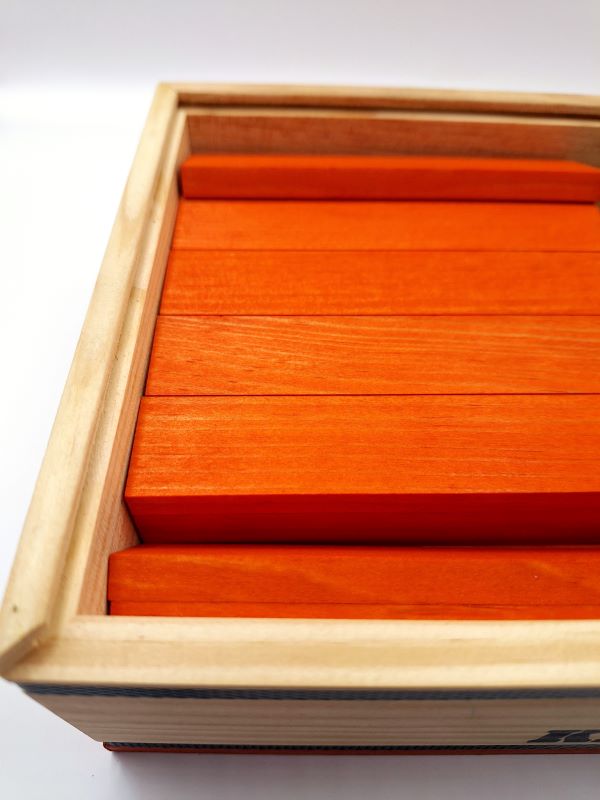 Deze tweedehands houten doos van Kapla ziet er nog als nieuw uit! Het bevat 40 oranje houten blokken om eindeloos mee te bouwen. Wat gaat jouw kindje ermee maken?