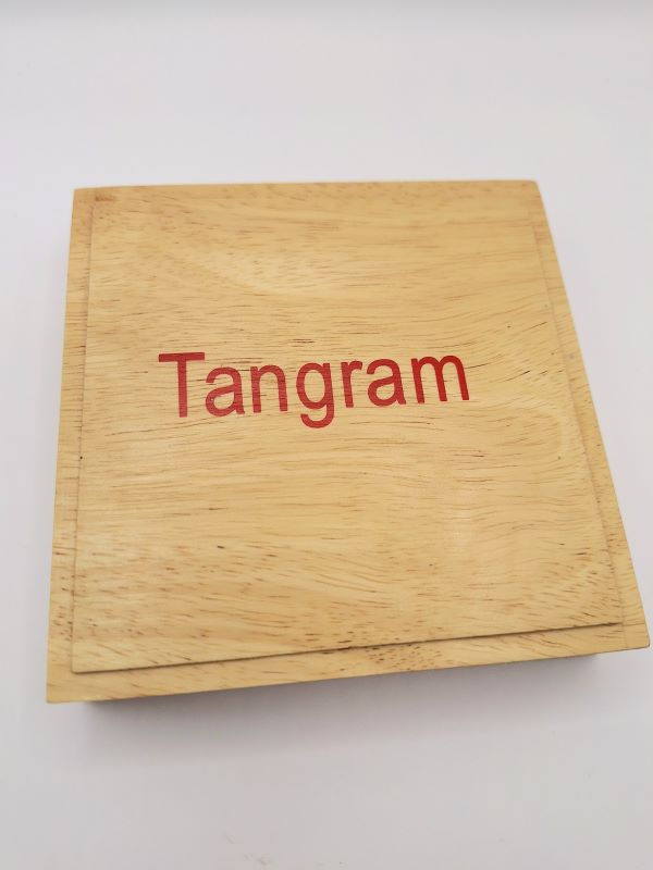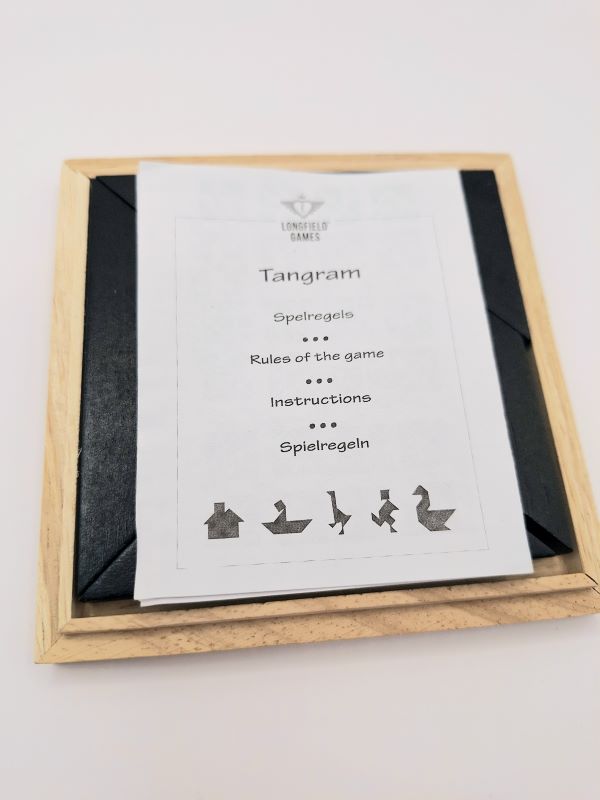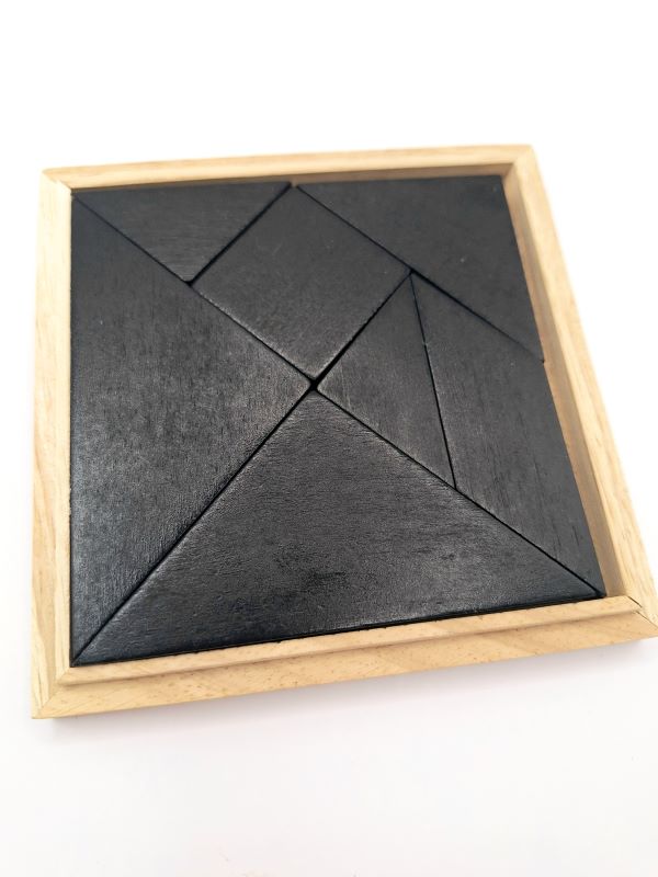 Een tangram is een Chinese puzzel die uit zeven stukken bestaat. Met de verschillende puzzelstukken kunnen eindeloos veel verschillende figuren gemaakt worden. Deze leuke tweedehands tangram bestaat uit 7 zwarte houten stukken en je kunt er o.a. een vis, boot, kat, vogel etc. mee maken. Wat gaan jullie als eerste maken?