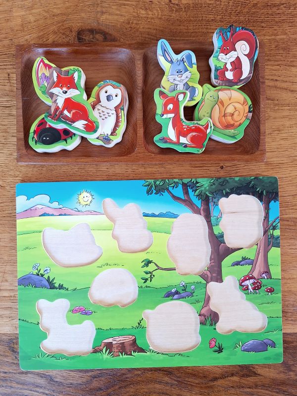 Tweedehands houten puzzel met acht verschillende diertjes. En het leuke is dat de dieren ook rechtop kunnen worden neergezet, dus ook geschikt voor bijvoorbeeld de seizoenstafel. Kent jouw kindje alle namen van de dieren?