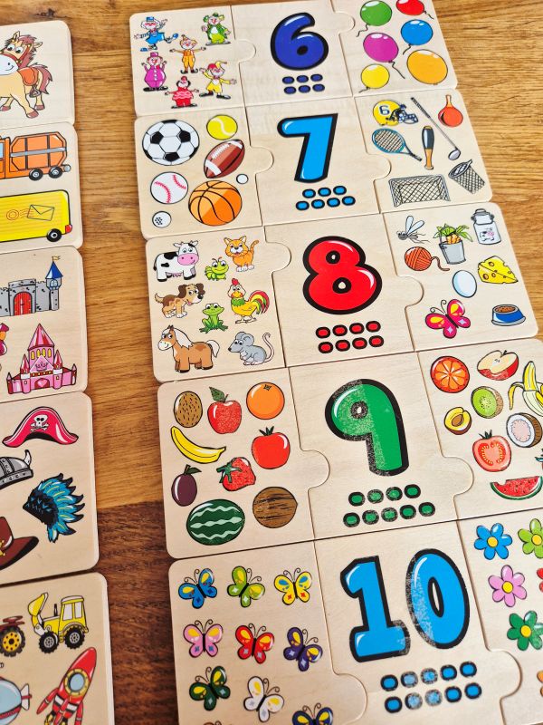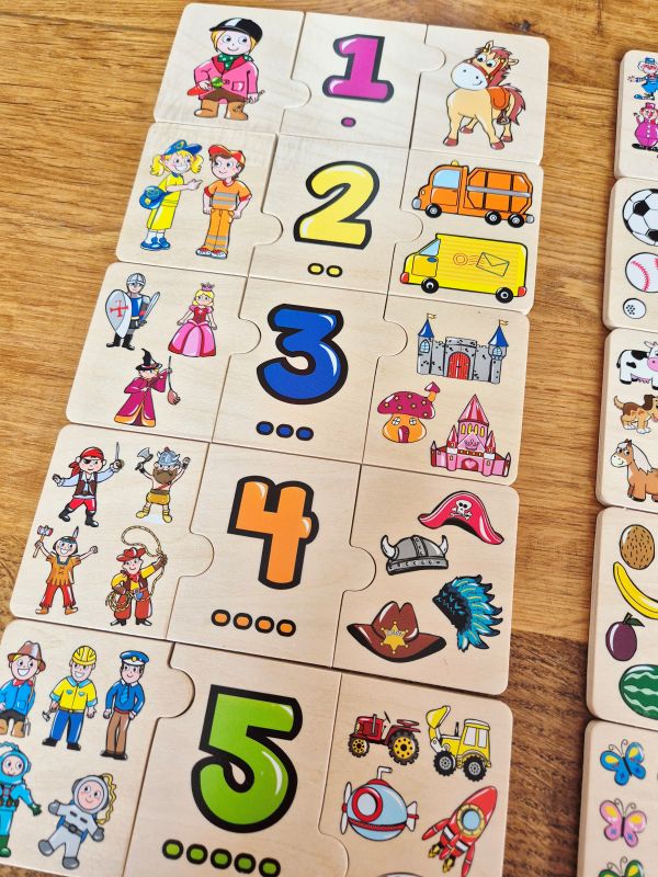 Leer spelenderwijs de cijfers met deze vrolijke, tweedehands puzzel. Match de getallen t/m 10 met de juiste afbeeldingen. De originele verpakking ontbreekt dus de puzzelstukjes worden geleverd in een linnen zakje.