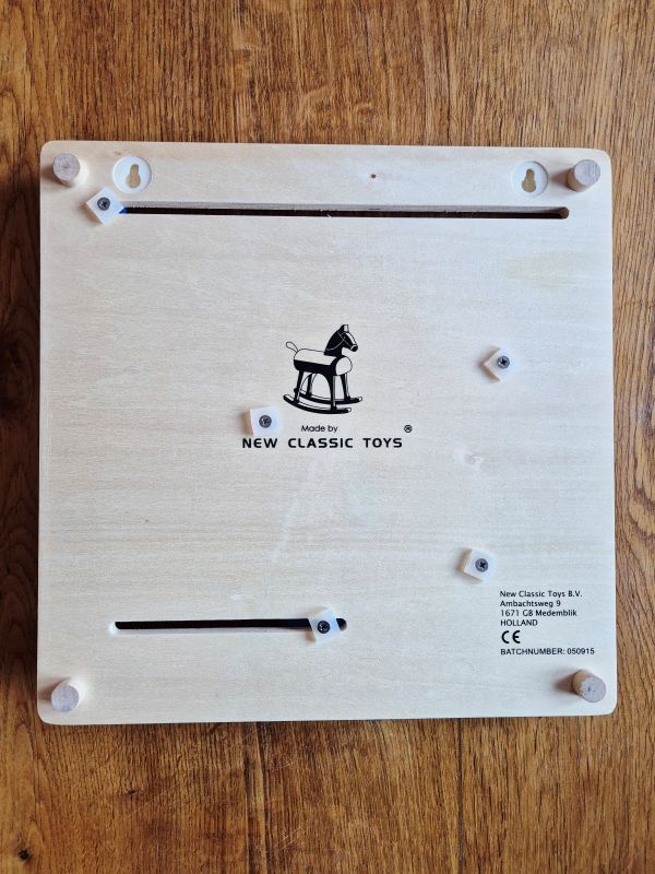 Introduceer je kind aan het concept tijd, data, seizoenen en het weer met deze tweedehands houten kalenderklok van New Classic Toys. Je kunt hem ophangen of ergens neerzetten.