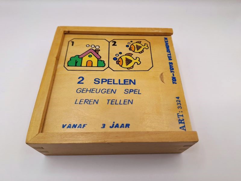 Met dit leuke tweedehands memory spelletje van Toi-Toys kun je spelenderwijs oefenen met leren tellen. De cijfers gaan t/m 10 en het zit in een handig houten opbergdoosje.